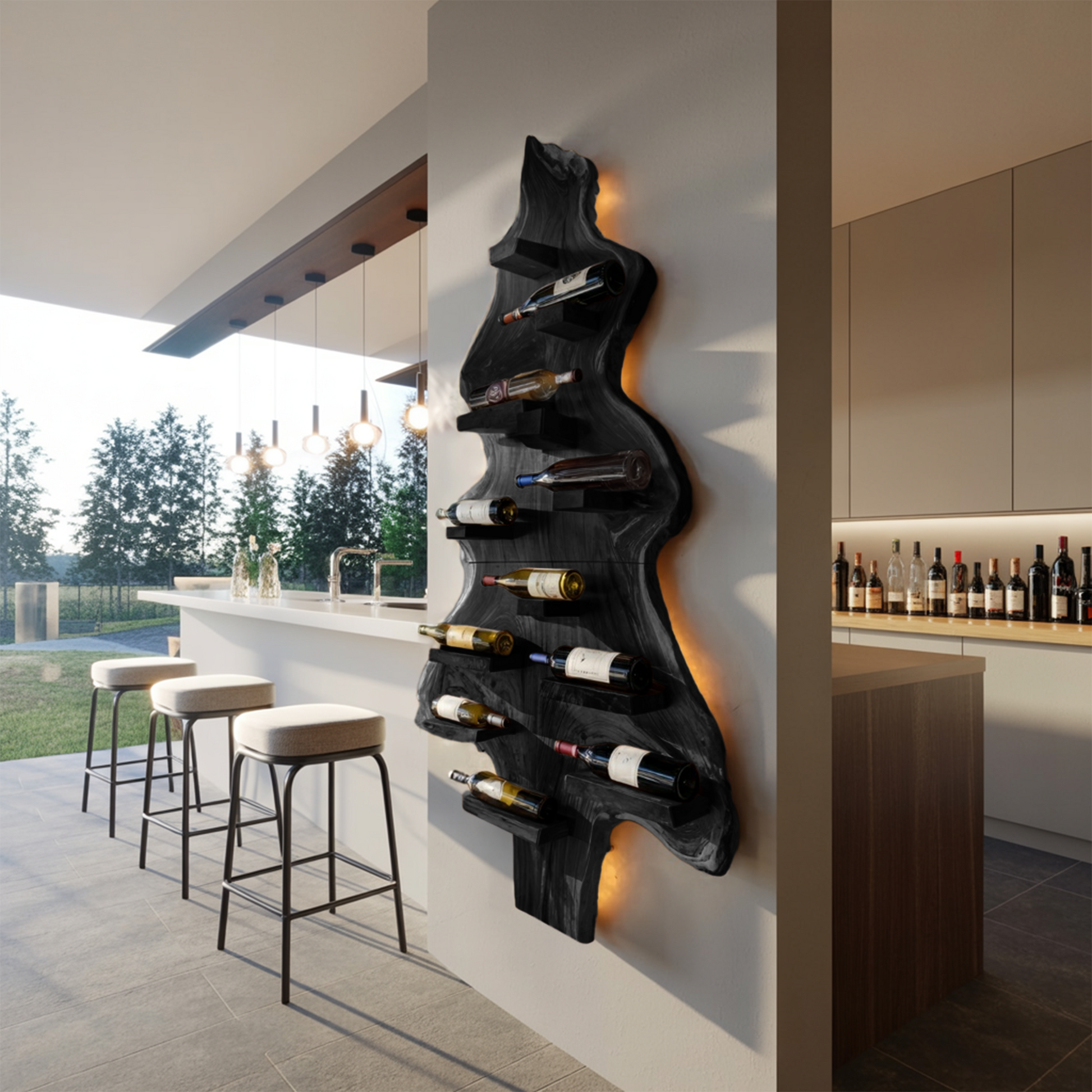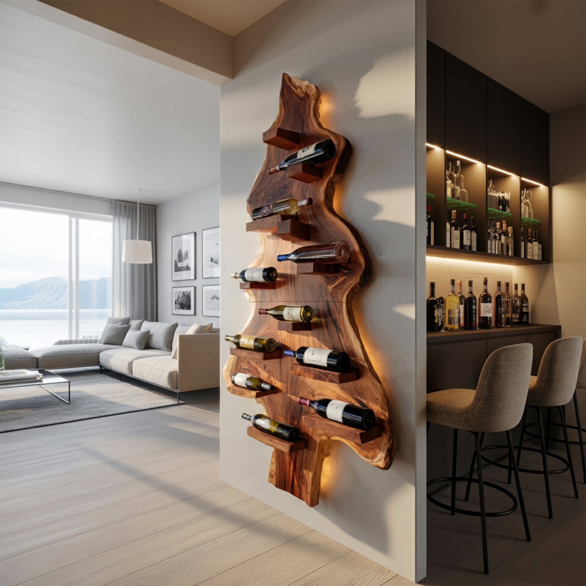 Each wine cradle is individually handcrafted from solid Monkeypod wood, known for its rich grain patterns and organic variations. Every curve and surface is shaped by hand, creating a unique piece with natural warmth and artisanal character.