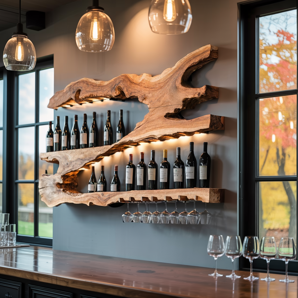 - Styled into a home bar for a warm, rustic accent